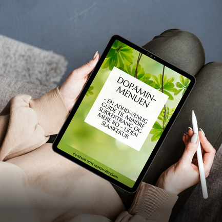 Dopamin-Menuen er en gratis guide til dig med ADHD/ADD – eller dig, der genkender følelsen af at være fysisk udmattet, men mentalt rastløs, og som ofte ender med at bruge sukker eller skærm for at få ro i hovedet.
